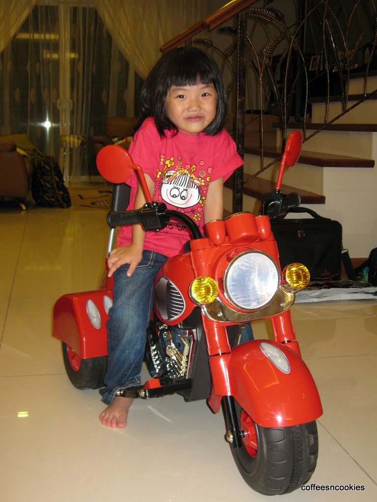 Eng Teck sook sook (BIL) gave her a battery operated bike.. a huge one.. watch out.. here's comes the superbiker. Cool eh ?
